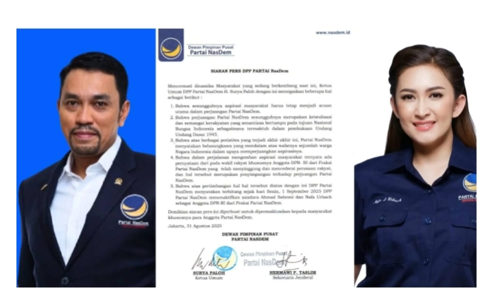 Hal itu disiarkan langsung dalam siaran pers oleh Ketua Umum DPP Partai Nasdem Surya Paloh, pada Minggu 31 Agustus 2025.