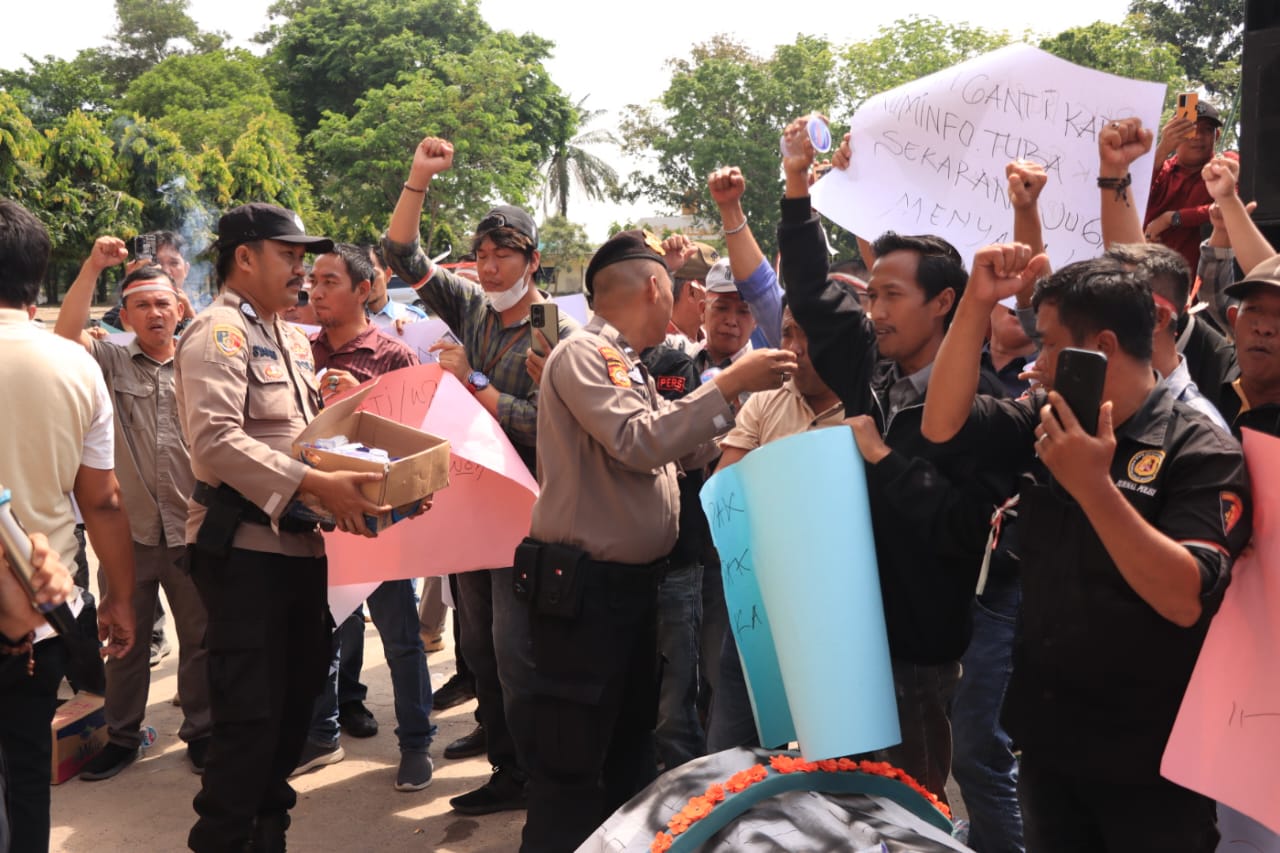 Samudranewstv- Tulang Bawang — Puluhan wartawan yang tergabung dalam Forum Wartawan Tuba Bersatu (FWTB) bersama sejumlah organisasi masyarakat sipil di Kabupaten Tulang Bawang menggelar aksi dan menyampaikan tuntutan tegas kepada pemerintah daerah, mendesak pencopotan Kepala Dinas Komunikasi dan Informatika (Kadis Kominfo) setempat. Aksi ini bukan tanpa alasan. Senin (15/09/2025)
